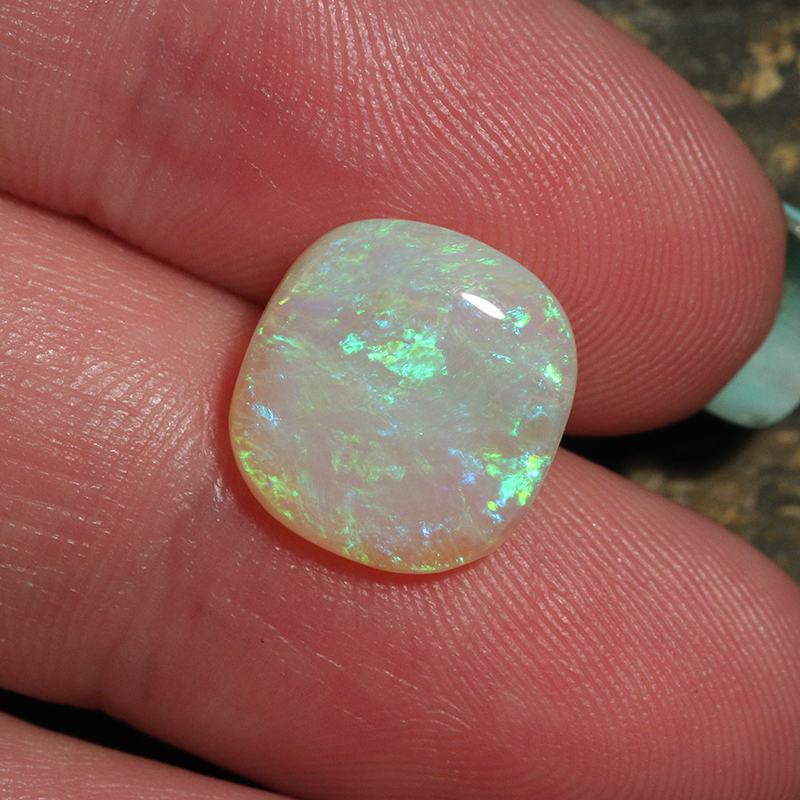 This is a high-quality natural Australian opal from Coober Pedy. It is a solid opal (not doublet or triplet) and is free from cracks.